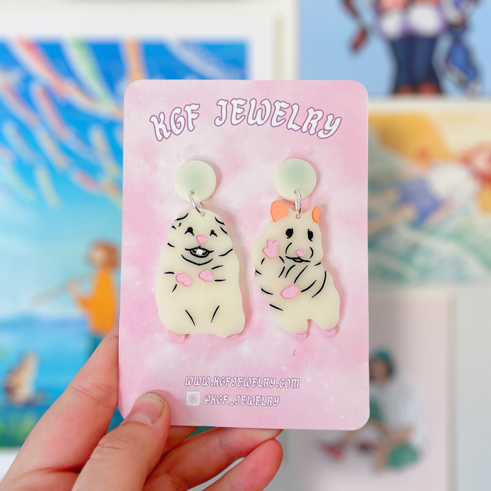 Hamster Meme Handmade Acrylic Dangle Earrings