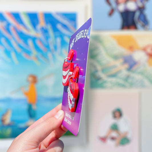 Chattering Teeth Handmade Acrylic Dangle Earrings & Keychains