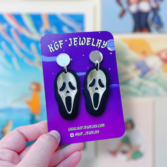 Ghostface Mask Handmade Acrylic Dangle Earrings & Keychains
