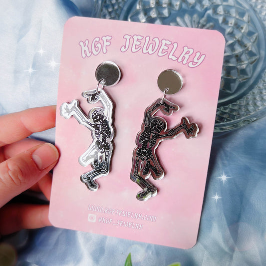 Dancing Skeleton Handmade Acrylic Dangle Earrings & Keychains