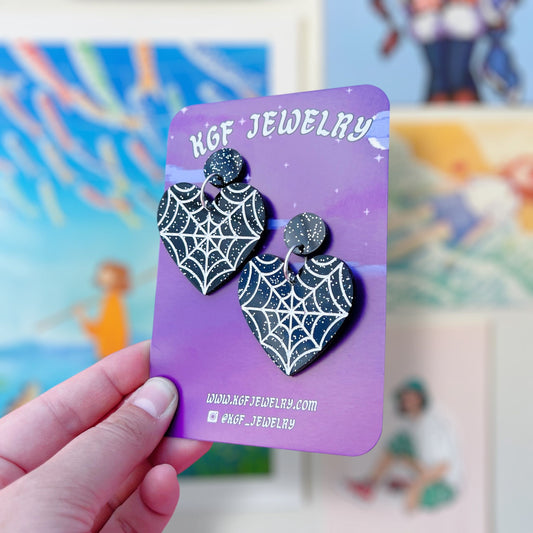 Cobweb Hearts Handmade Acrylic Dangle Earrings & Keychains