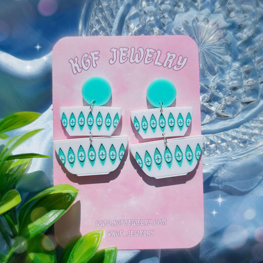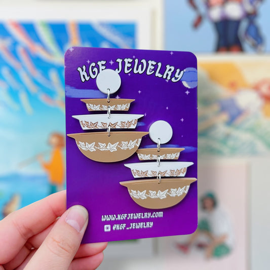 Butterprint Pyrex Handmade Acrylic Dangle Earrings & Keychains
