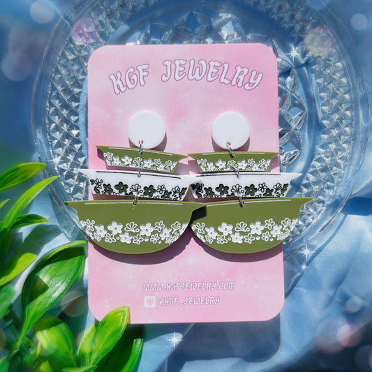 Spring Blossom Pyrex Handmade Acrylic Dangle Earrings & Keychains