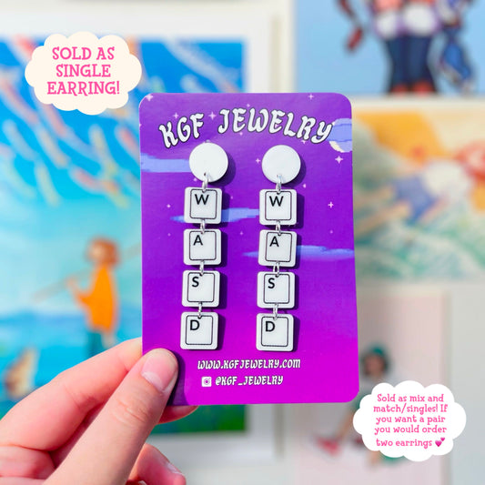 WASD Keys Single Handmade Acrylic Dangle Earrings & Keychains